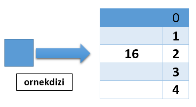 int *ornekdizi; //ornekdizimiz tamsayı gösterecek şekilde tanımlanır. ornekdizi=new int[10]; //bellekten 10 tamsayı dizisi için yer tahsis edilir ve dizinin adresi ornekdizi'ye atanır. ornekdizi[2]=16; //bellekten alınan dizinin 1.indeksteki elemanına 15 atanır.Bellekten new ile aldığımız yerler, kullanımları sona erdiğinde yeniden kullanılamazlar. Bu nedenle bellekten aldığımız hücreleri program bitmeden delete komutu ile silmemiz gerekir.