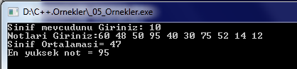 cout<<"En yuksek not = "<<max<<endl;
