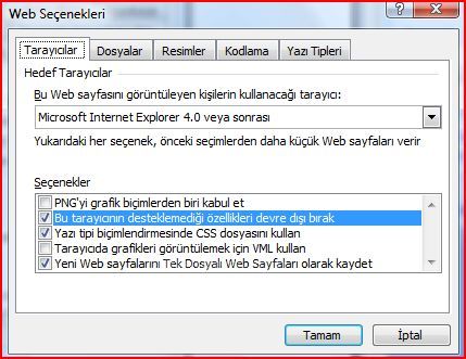 Web Seçenekleri Web Seçenekleri iletişim kutusunu açmak için tıklatın. Bu iletişim kutusunu, Word'ü Web sayfası oluşturmada kullanma seçeneklerini ayarlamak için kullanın.