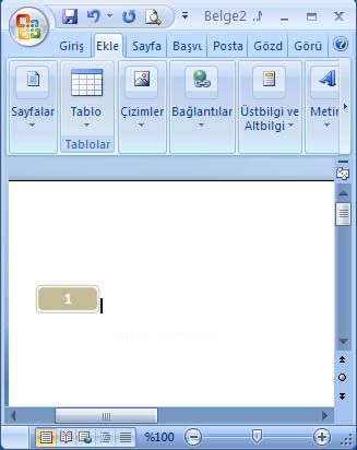 Sayfa numaralandırılmaya aşağıdaki resimde örnek olarak gösterilmiştir.