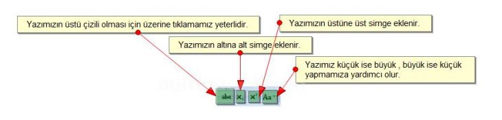 Üstü çizili – alt simge – üst simge – küçük büyük harf değiştir
