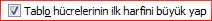 Bu sekme onaylandığında ve tablo oluşturduğumuzda hücrenin içine yazdığımız kelimenin tamamı küçük harflerle yazılırsa kelime otomatik olarak değişir ve ilk harf büyük geriye kalan harfler de küçük harfle yazılır.