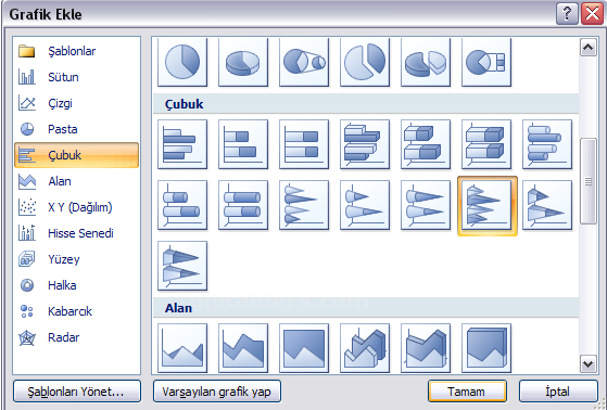 Varsayılan Grafik Yap kullanılacak olan grafik türünü ayarlamaya yarar.