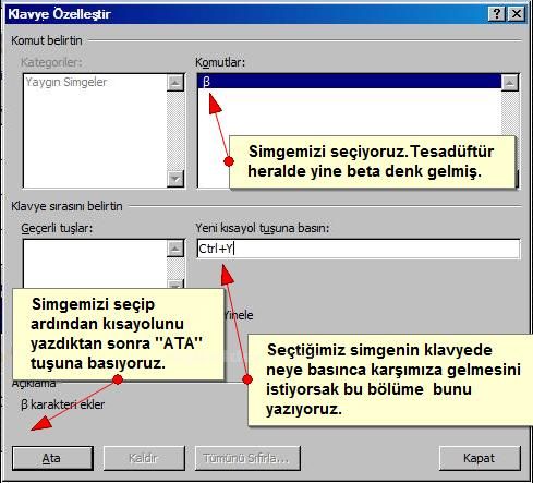 Örneğin ;Beta karekterini metnimize eklemye çalışalım.