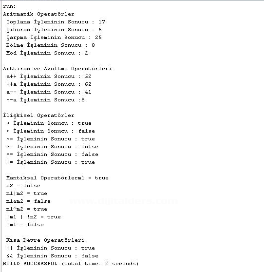 System.out.println("n Kısa Devre Operatörleri " + "n || İşleminin Sonucu : "