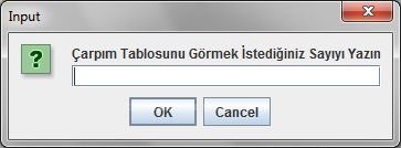 int sayi = Integer.valueOf(JOptionPane.showInputDialog("Çarpım Tablosunu Görmek İstediğiniz Sayıyı Yazın"));