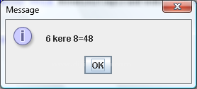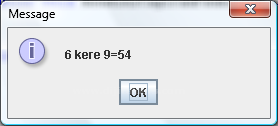 JOptionPane.showMessageDialog(null, Sayi + " kere " + i + "=" + Sonuc);